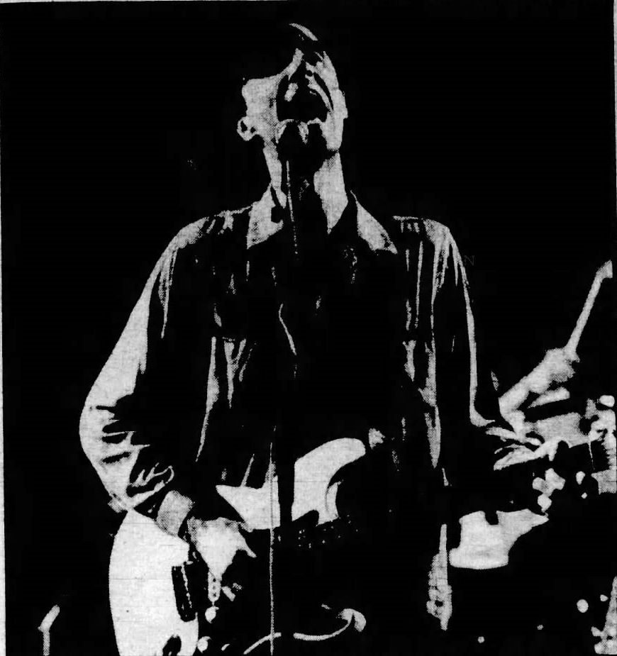 David Byrne performing with Talking Heads at the University of Illinois Auditorium, Urbana, October 24, 1979. Photo by Peter Swank. Source: newspapers.com