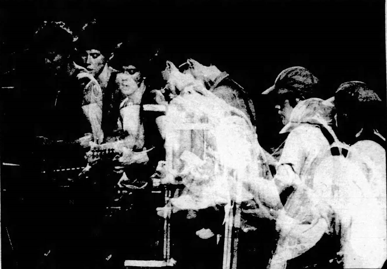 Tina Weymouth and Chris Frantz performing with Talking Heads at the University of Illinois Auditorium, Urbana, October 24, 1979. Photo by Dave Boe. Source: newspapers.com