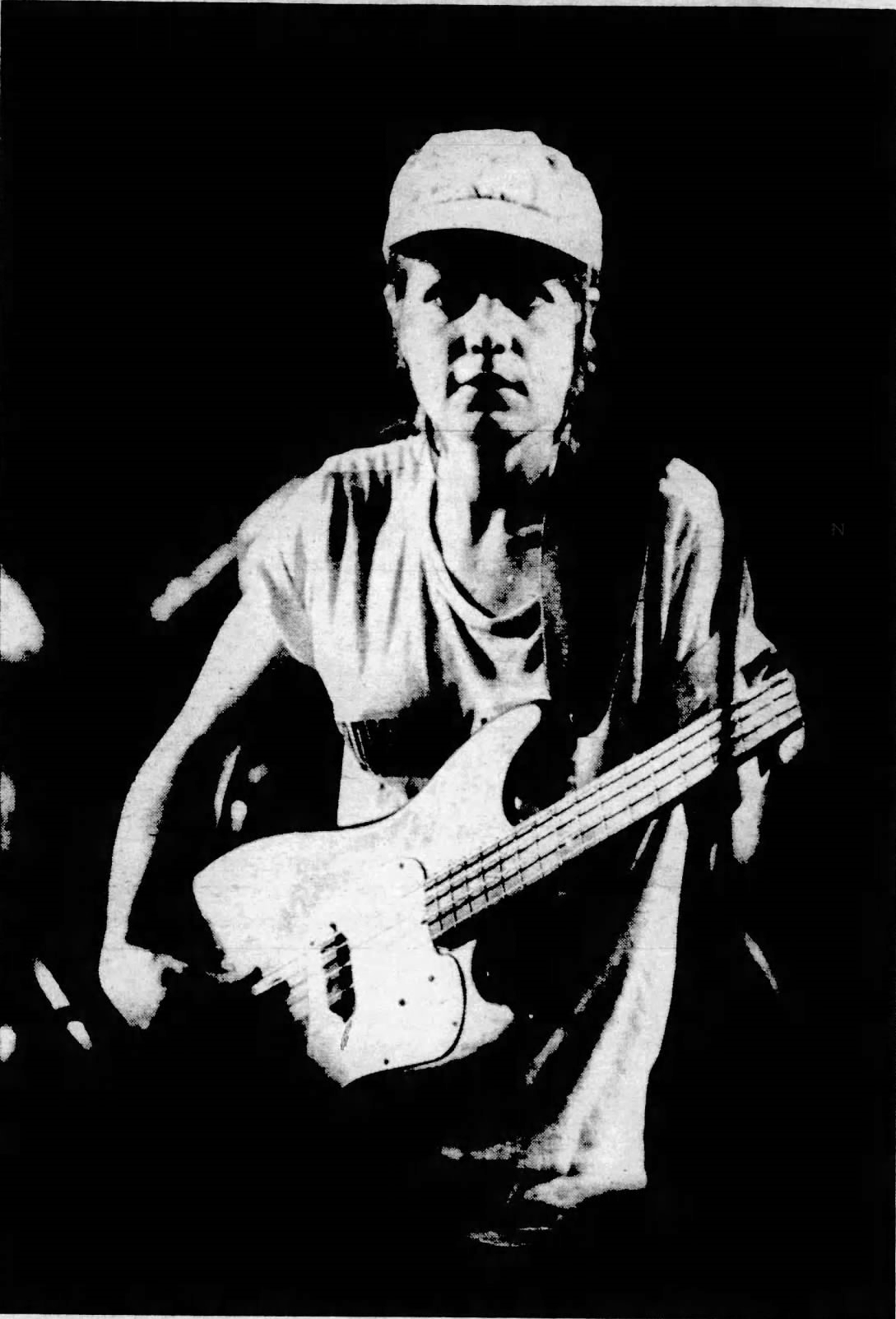 Next Page (2) -->Tina Weymouth performing with Talking Heads at the University of Illinois Auditorium, Urbana, October 24, 1979. Photo by Dave Boe. Source: newspapers.com